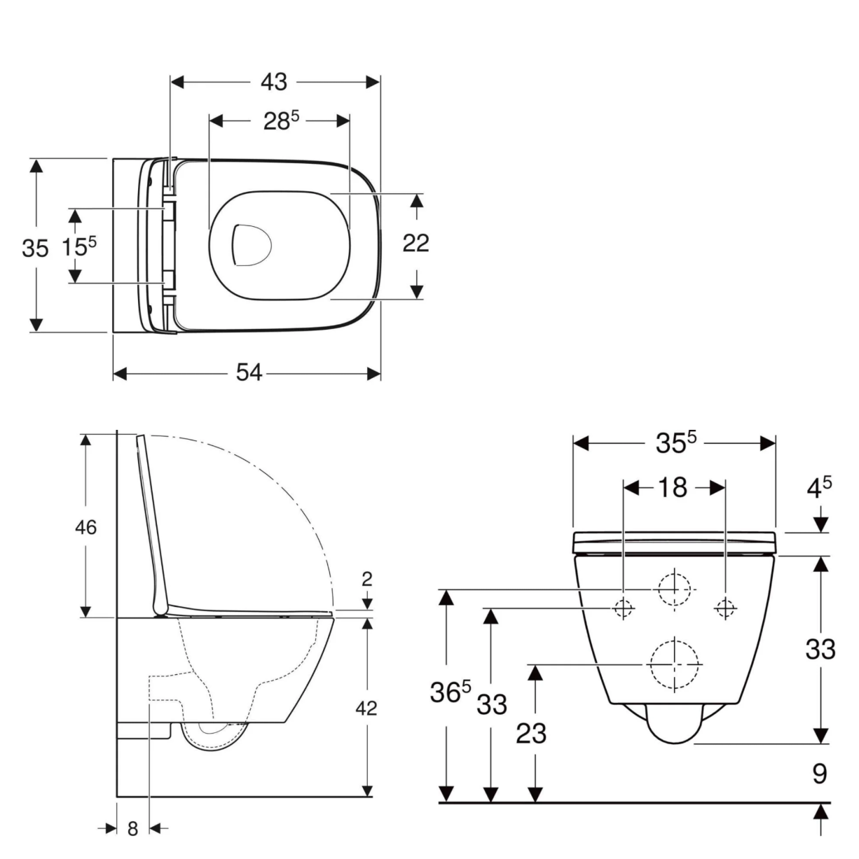 Geberit Smyle Square Rimfree Asma Klozet ve Kapak Seti