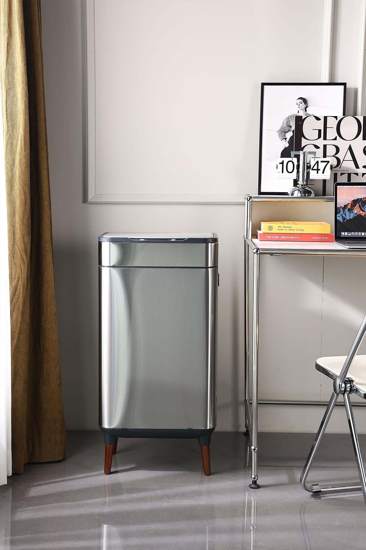 - Sensörlü Çöp KutusuBu sensörlü çöp kutusu, elinizi salladığınızda veya ayağınızı vurduğunuzda otomatik olarak açılan kapağı ile çöp atmak için daha hızlı ve temiz erişim sağlayan dokunmatik teknolojilere sahiptir.