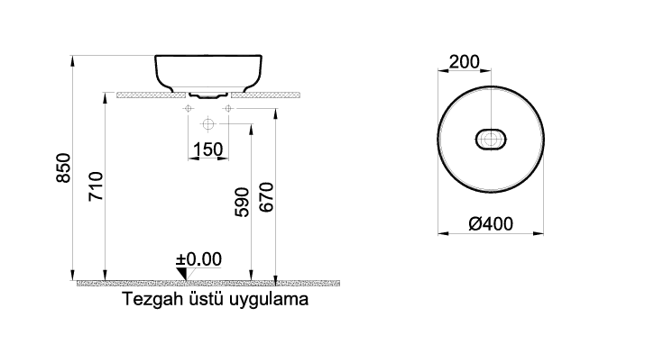 Kale Zero 2.0 Yuvarlak Çanak Lavabo Artizan 40X40cm